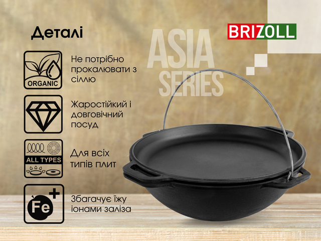 Характеристики чавунних азійських казанів Brizoll з кришкою-сковородою гриль